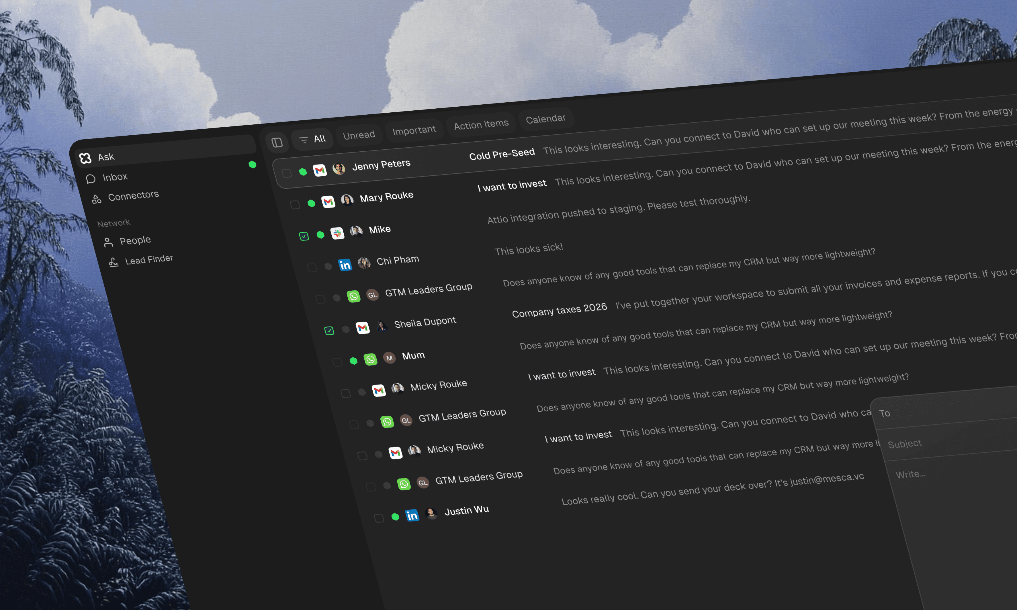 Your unified inbox now supports filtering by individual apps—email, LinkedIn, Slack, WhatsApp, and more—so you can focus on one channel at a time or all of them at once.