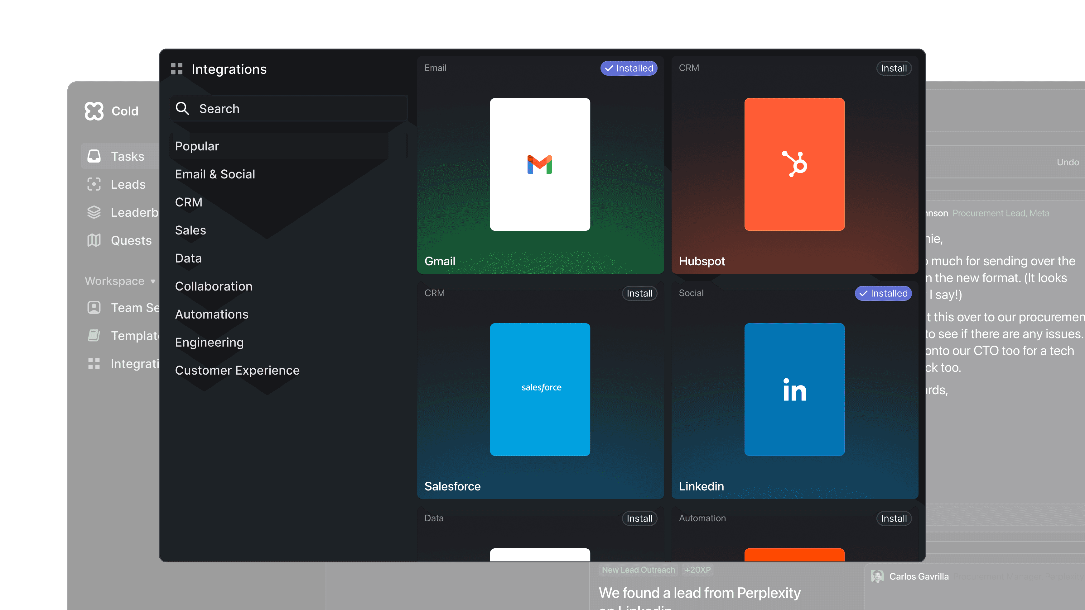 Never touch a CRM again. Pull and push to your CRM of choice in real-time.
