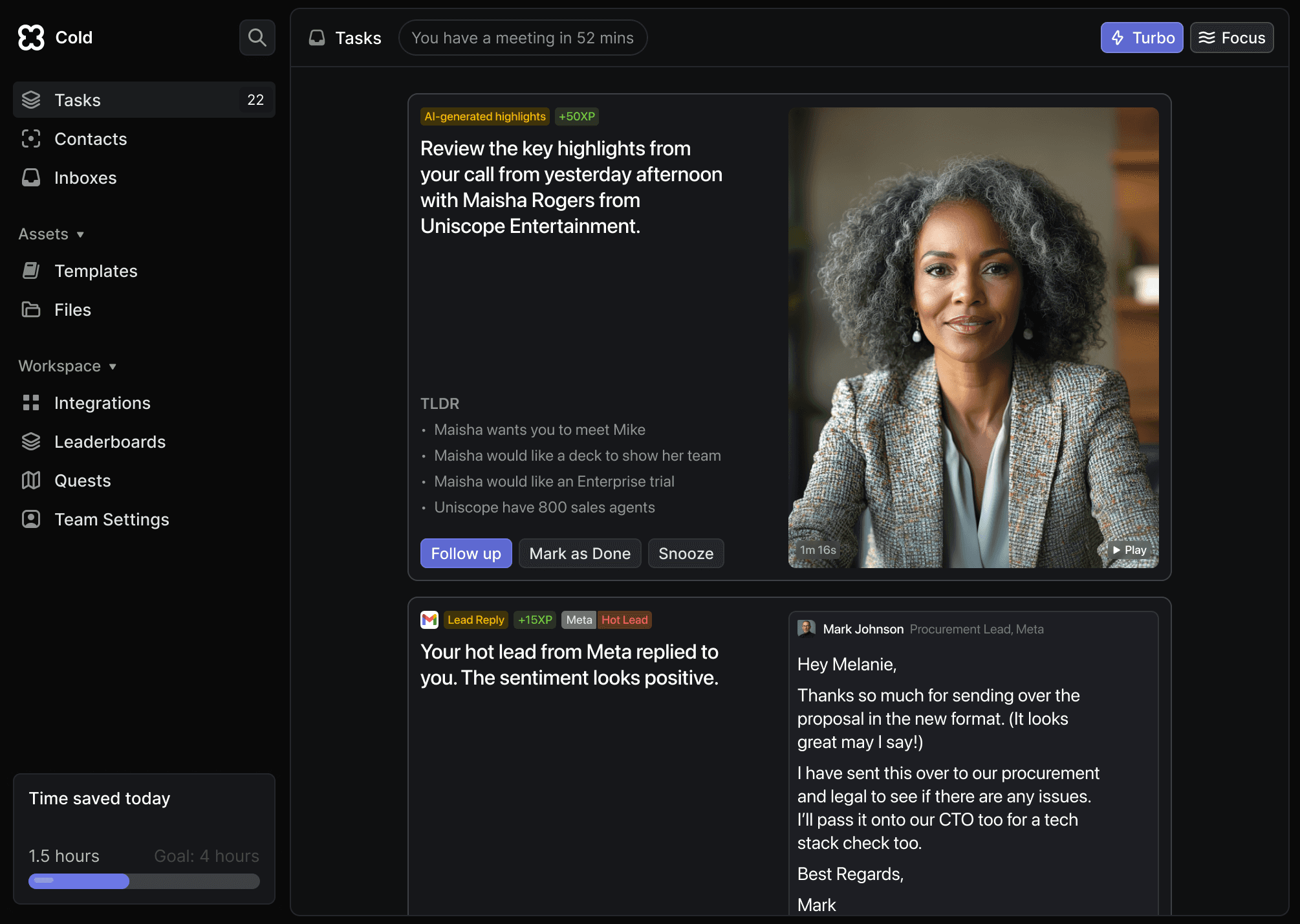 Cold is meticulously designed to help world-class founders and sales teams create relentless focus and lightning fast execution without the busy work.